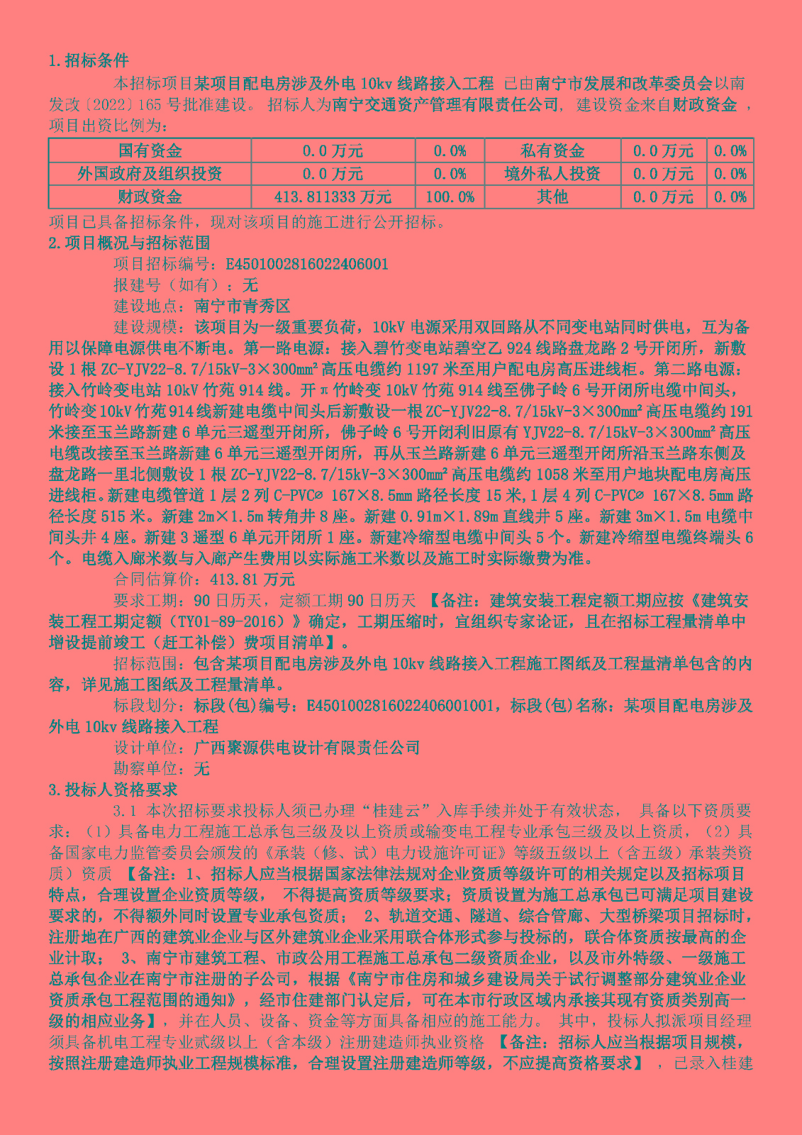 某項(xiàng)目配電房涉及外電10kv線路接入工程施工招標(biāo)公告