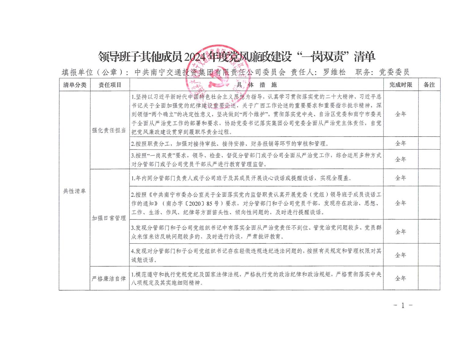 領(lǐng)導(dǎo)班子其他成員2024年度黨風(fēng)廉政建設(shè)“一崗雙責(zé)”清單(四)