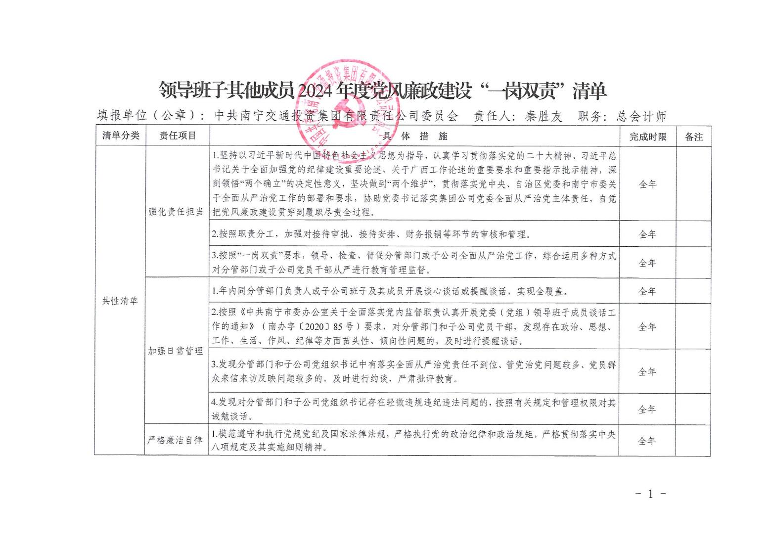領(lǐng)導(dǎo)班子其他成員2024年度黨風(fēng)廉政建設(shè)“一崗雙責(zé)”清單(七)