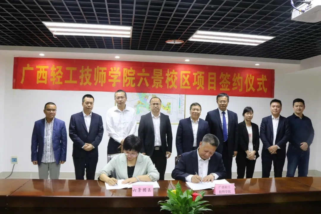 4月29日下午,南寧六景工業(yè)園區(qū)管理委員會、廣西輕工技師學(xué)院在六景工業(yè)園區(qū)內(nèi)正式簽訂廣西輕工技師學(xué)院六景校區(qū)項(xiàng)目投資合同書,標(biāo)志著交投園區(qū)公司服務(wù)跟進(jìn)的又一項(xiàng)目簽約。