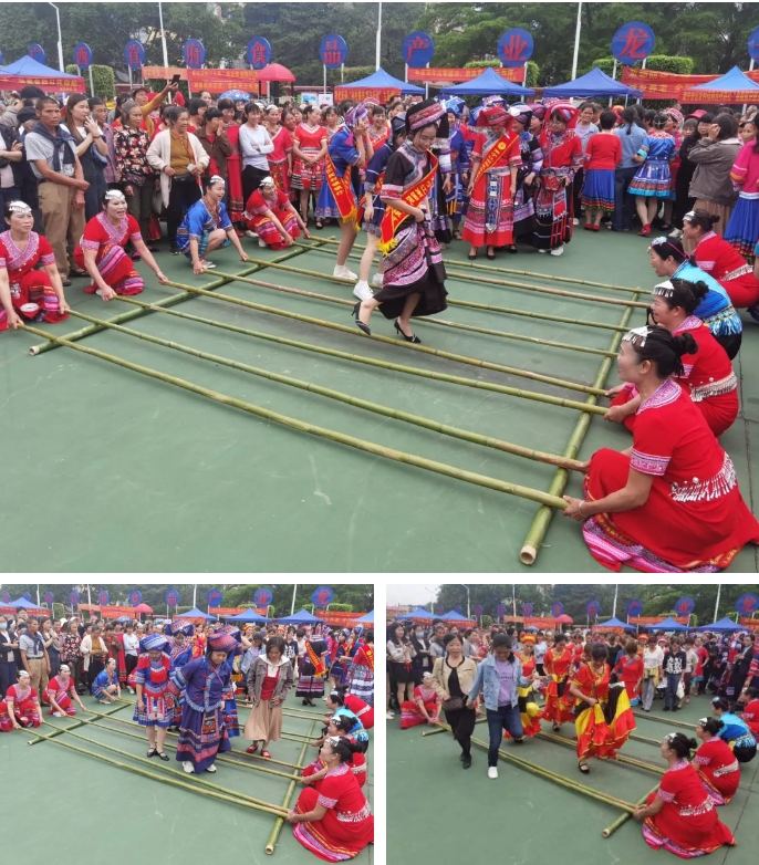 “跳竹竿”不僅是壯族人民的一種娛樂,也是壯族人民傳統(tǒng)文化的重要組成部分。它代表了壯族人民堅韌不拔的精神和勇敢、樂觀、向上的生活態(tài)度。圖為集團(tuán)職工參與社區(qū)跳竹竿舞活動