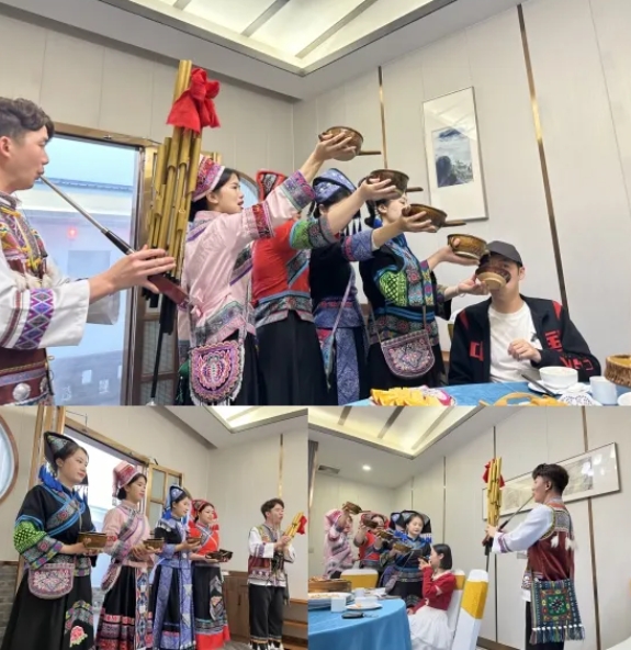 “百家宴”是侗族人民待客的最高禮遇,是侗族人民之間以團(tuán)結(jié)、友誼、和諧、互動為主題的集體交流待客方式,承載著侗族人民遷徙的歷史和文化沉淀?!俺园偌已纾{百家福,成百樣事,享百年壽”。