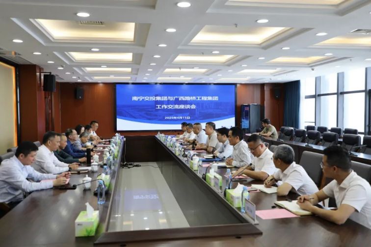 4月15日,廣西路橋工程集團(tuán)黨委副書記、副董事長(zhǎng)、總經(jīng)理李軍帶隊(duì)到南寧交投集團(tuán)開展工作座談。南寧交投集團(tuán)黨委書記、董事長(zhǎng)曹壯,副總經(jīng)理馬衛(wèi)然參加座談。