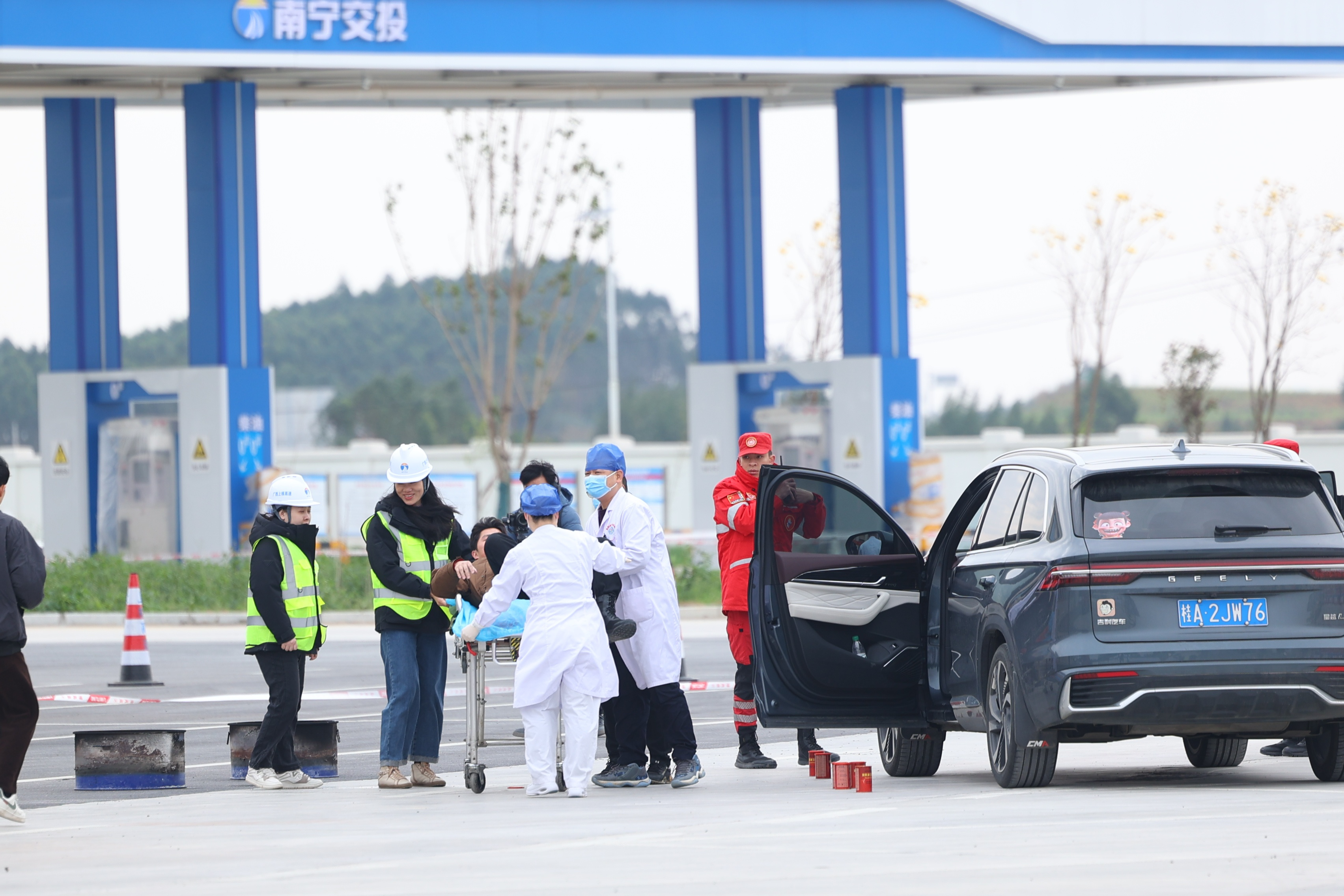 林橫高速開展?;愤\輸泄漏突發(fā)事故應急聯(lián)合救援演練