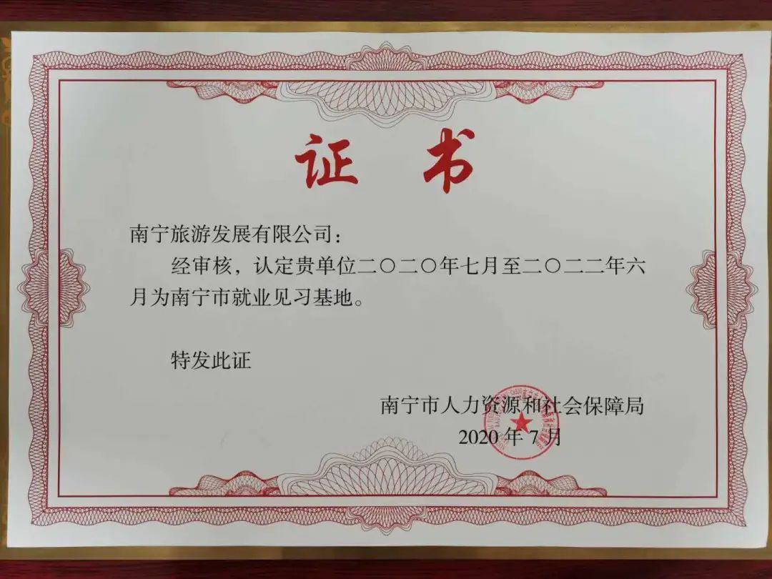 旅發(fā)公司被認(rèn)定為2020年南寧市就業(yè)見(jiàn)習(xí)基地
