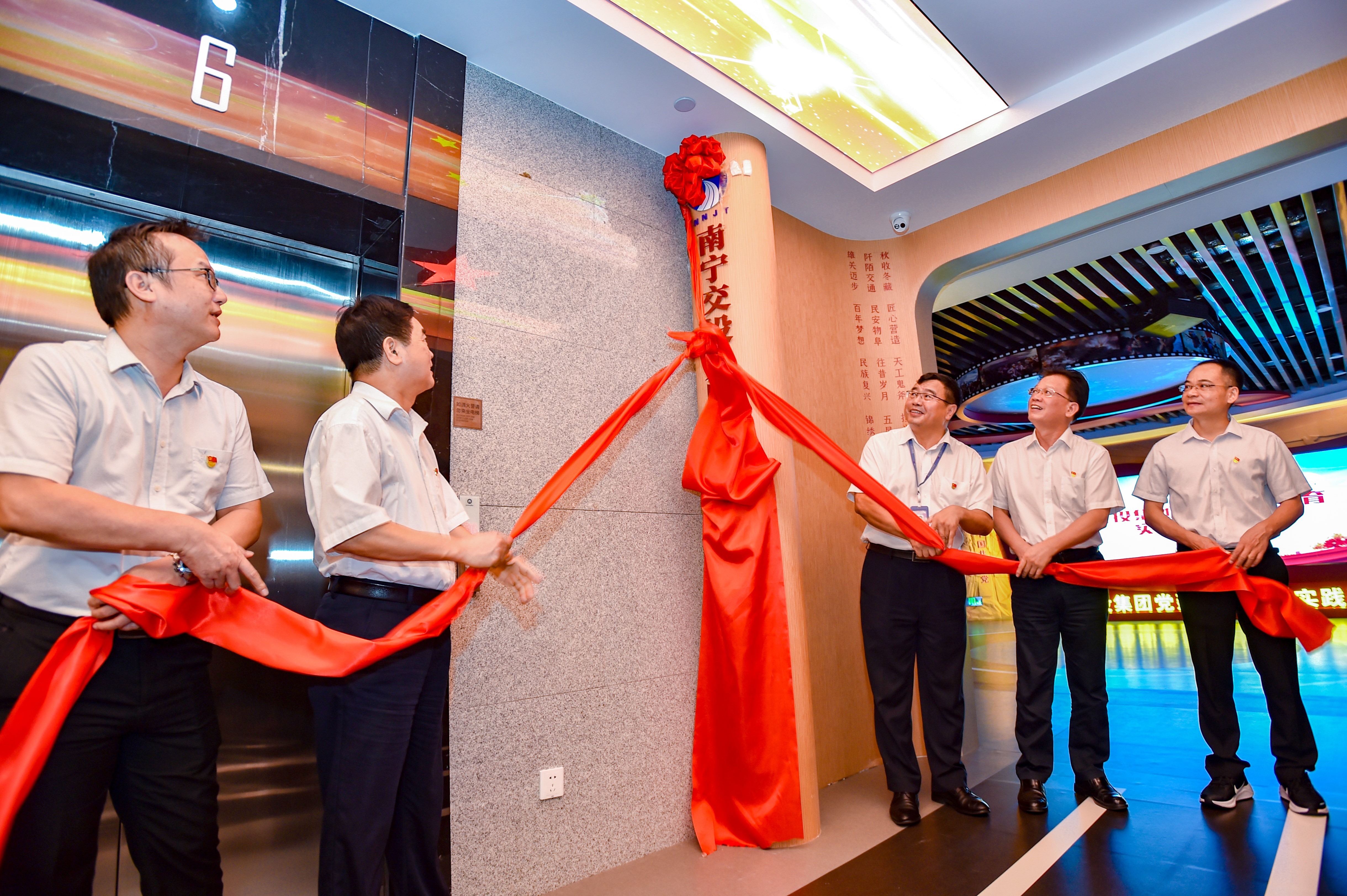 2021年7月1日下午,南寧交投集團新老黨員身著白襯衫,佩戴閃亮的黨員徽章,等候在集團公司辦公樓10樓黨建學習教育實踐基地門口,準備參加“初心如磐奔未來” 黨史學習教育暨黨建學習教育實踐基地(以下簡稱黨建基地)啟用儀式活動?;貎韧獯似鸨朔呐d奮交談聲和一張張熱情洋溢的笑臉,讓這個首次啟用的黨建基地凝聚滿滿的正能量。