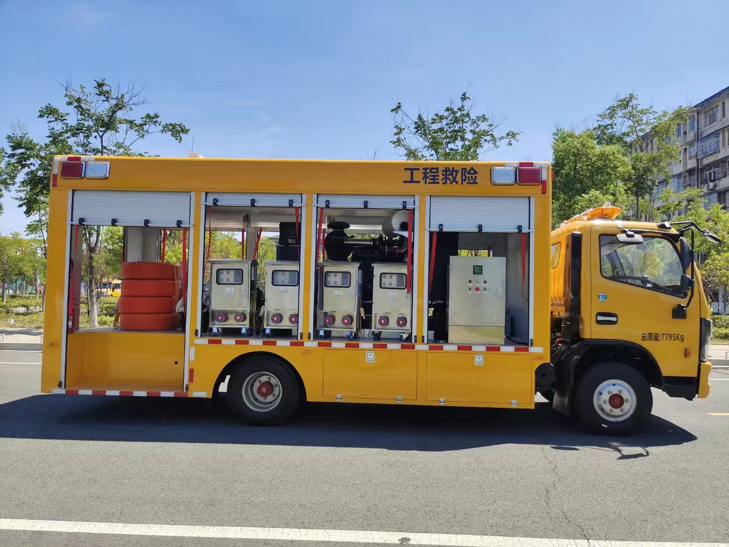 | 上裝配置 | 1、廂體外形尺寸根據(jù)實際公告標準。 廂體:具備運輸、防雨、防火、阻燃、防塵、防銹、降燥,隔震、長期抗震結構。外部鋼材為優(yōu)質冷軋鋼板,表面處理平整,內襯優(yōu)質冷軋鋼板折彎骨架,強度牢固,配重合理。 2、廂體一體化鋼體結構設計, 頂部平坦。廂體采用骨架式夾層形式,外蒙皮采用厚1.5mm優(yōu)質防銹處理的汽車專用冷軋鋼板,中間骨架采用防銹處理后的鋼管焊接,頂層、側圍內、外層之間填充長時間使用對人體無害的防火阻燃環(huán)保吸音棉,外層鋪蓋一層阻燃金屬布,內飾采用0.8mm厚網(wǎng)孔板。底板采用鋼結構底框架,上表面鋪厚2mm花紋鋼板。 3、車輛廂體采用整體包覆式,廂體兩側下部設置裙邊式,全封閉式結構,頂部為圓弧型,尾部有轉向燈、剎車燈、尾燈、霧燈,箱體表面光滑平整。車廂靠駕駛室前部為休息室,休息室內帶折疊坐椅及折疊桌,往后為機組室,機組室左、右側布置進排風百窗,設置機組檢修門一個,下置登車踏步梯,車廂后端為后為卷簾門。右側排風百葉窗下部為維修觀察艙門。左側下圍設置有工具箱及功能艙門等。右側下圍設置有汽車油箱艙、液壓控制艙等。 4、車廂尾部配置標準儲物貨架讓出水帶、加長電纜等附件存放有序、互不干涉,讓緊急排水搶險變得更加快捷、有效。 5、廂體噴漆:工程黃,與車頭同一顏色; 6、最終的門數(shù),形式,打開方式嚴格按照合同要求依據(jù)程力公告生產(chǎn); | ||